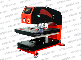 Plancha neumática para uso profesional, con plato de 40x50cm y apertura lateral. Presión regulable mediante compresor (no incluido), dispone pantalla táctil LCD que permite regular la temperatura y el tiempo. Permite grosor de materiales de hasta 5,3cm. Platos opcionales con cambio sin herramientas.